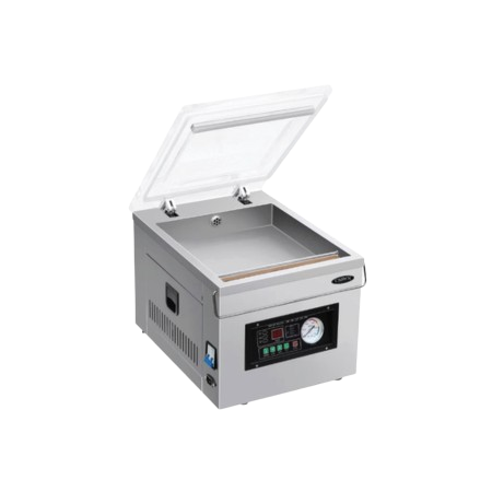 Selain itu, kami juga menyediakan Vacuum Machine, yang merupakan solusi ideal untuk mengemas makanan dalam kemasan higienis dan vakum. Vacuum Machine membantu memperpanjang masa simpan makanan dengan menghilangkan udara dari kemasan, sehingga makanan dapat tetap segar lebih lama dan terhindar dari kerusakan yang disebabkan oleh oksidasi dan kontaminasi udara. Dengan menggunakan Vacuum Machine dari Crown Horeca, Anda dapat memastikan kualitas makanan Anda tetap terjaga, sehingga pelanggan Anda akan selalu puas dengan produk Anda.